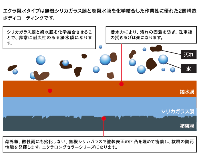 エクラハイブリッドは2層の被膜により、高い耐久性と深いツヤを